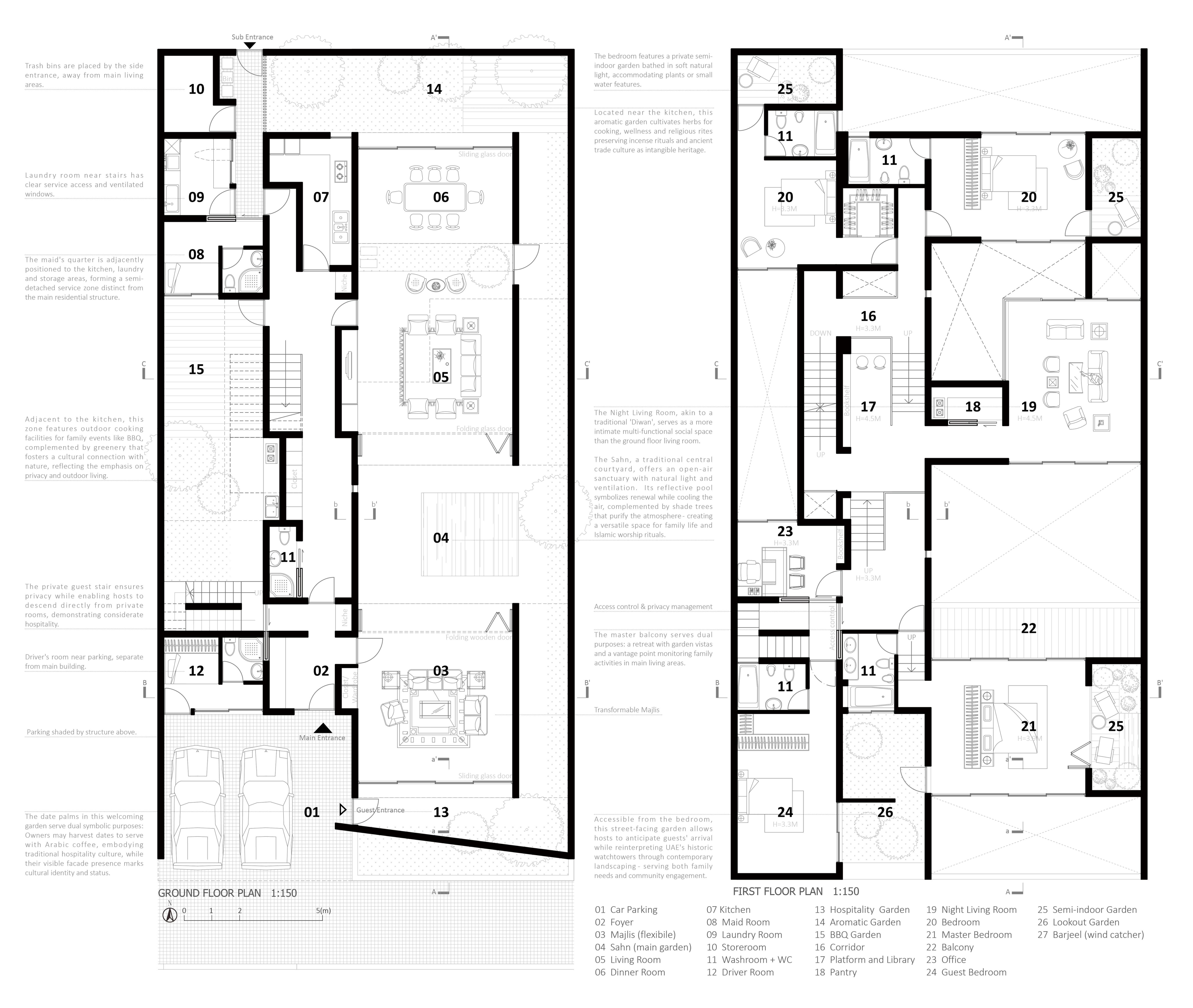 · Bio-Climatic Comfort: Inspired by the traditional Barjeel, our modern wind-catcher system and double-height ventilation ensure a naturally cool interior tailored to the Gulf climate.